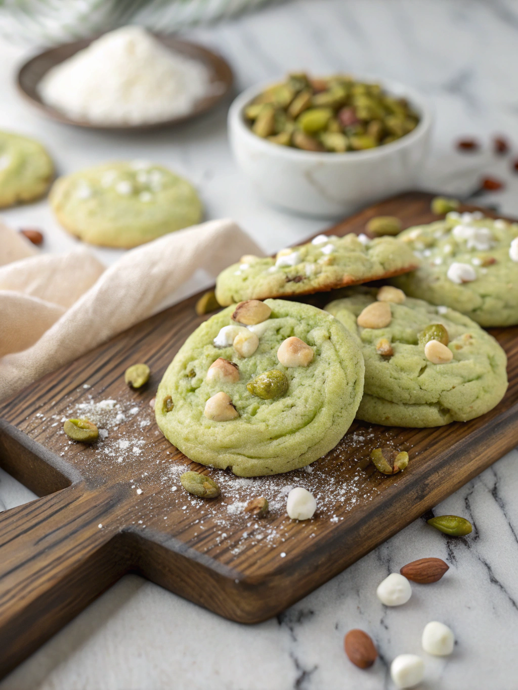 Soft and chewy cookies with a delightful pistachio flavor, thanks to the addition of pistachio pudding mix.